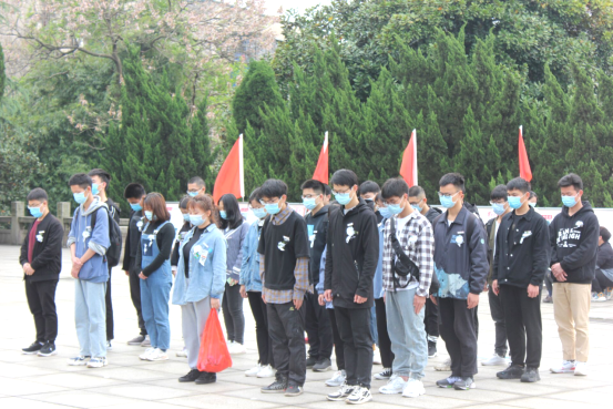 各青年团员代表在负责人的带领下有序地进入陵园,庄严、整齐、肃穆的伫立在烈士纪念碑前。公祭活动正式开始,由团总支书记周洳帆老师进行发言,周老师激励我们作为新时代青年团员,应当牢记党的教导,时时处处严格要求自己,不断向党组织靠拢,努力成为一名优秀的党的后备军。