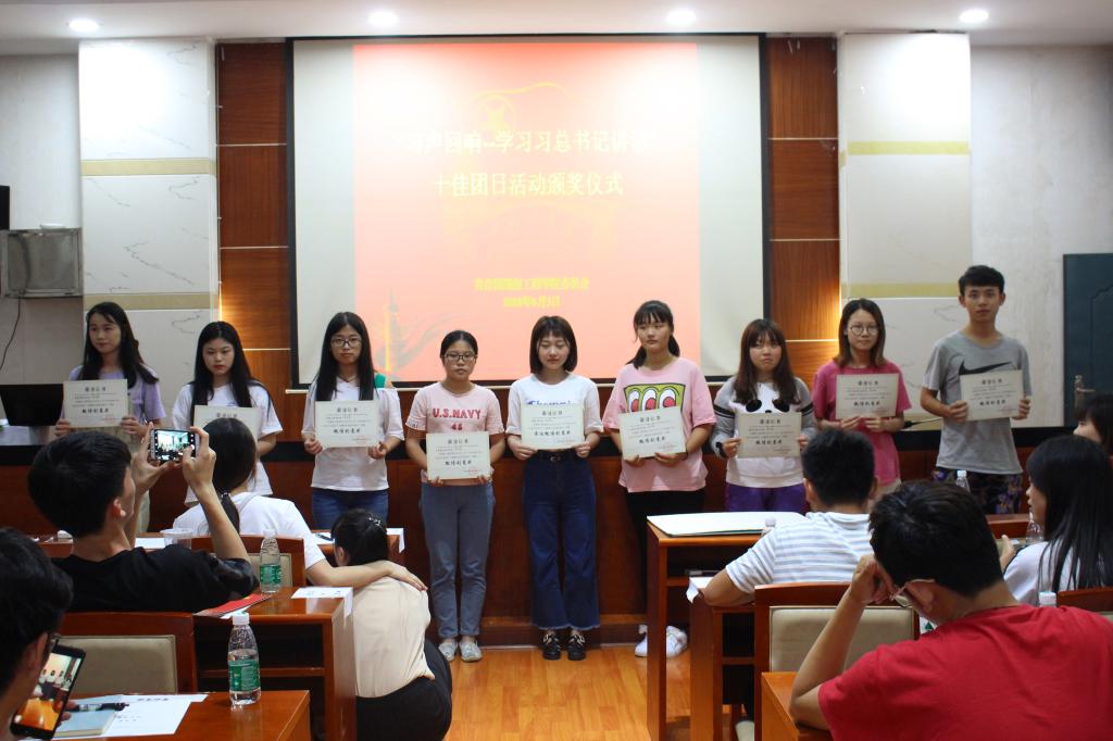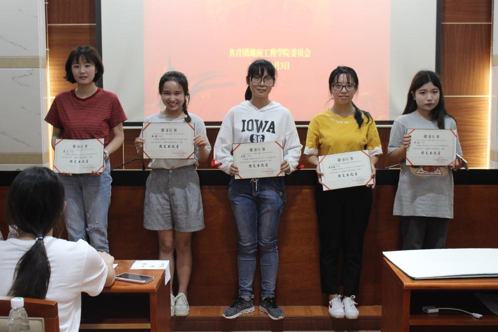 最后,评委根据线上线下各项活动的开展情况,评选出了微博“创意奖”九名、“团支书之星”五名、“优秀团日活动”十个、“优秀组织奖”五名(名单附后),并现场颁奖。