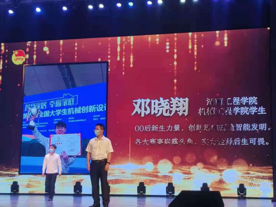 邓晓翔是机械工程学院大三学生。他多次参加国家级、省级各类创新设计大赛,通过比赛不断深化自己对创新的理解,强化自己的实践能力,获得了多项省级和国家级比赛奖励。他在学业上刻苦努力,积极进取,不断丰富和积累自己的理论知识,并取得了优异的成绩,多次列于本专业第一,获得国家特等奖学金和一等奖学金。他还在课余时间积极参与各种志愿服务活动,关爱孤寡老人,帮助留守儿童,在疫情期间主动参加社区交通秩序维持工作等。他的优秀事迹值得当代大学生学习。