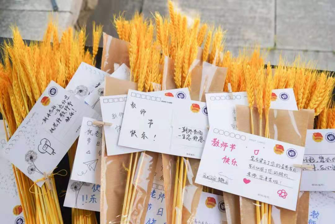 本次送祝福活动分别以“校学生会致全体老师的一封信”、录制祝福语视频和赠明信片与麦穗三种形式进行。“爱归本真,礼谢师恩”,9月10日,校学生会特代表全体同学在学校各校区多处设立了“送福站”,为辛勤工作的老师们送去同学们真诚的祝福,并于这天上传了“校学生会致全体老师的一封信”和提前录制好的祝福语视频。