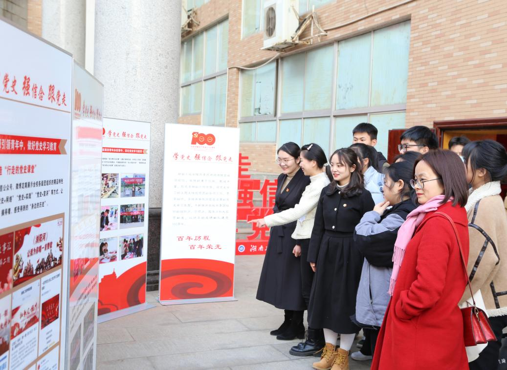 在随后进行的“强国有我,接续奋斗 走好新时代赶考之路”共青团党史学习教育交流展上,大家一边观看展板,一边深入交流388vip太阳集团共青团深入党史学习教育的特色做法,积极引导青年学生开展形式多样党史学习。