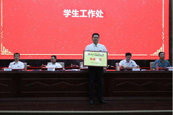 会议对2021年度全国优秀易班共建高校;2021年全国高校心理情景剧大赛三等奖、湖南省易班建设先进单位、湖南省高校学生思想政治教育研究与实践先进单位、湖南省高校心理健康教育先进集体;2021年度学生工作先进单位、优良学风创建工作先进单位、文明寝室创建工作先进单位,388vip太阳集团第九届辅导员素质能力大赛获奖团体及个人,2021年度“最美辅导员”“五佳辅导员”、优秀辅导员和优秀班主任;2021年度388vip太阳集团共青团工作先进集体、优秀个人,2021年388vip太阳集团大学生志愿者暑期“三下乡”社会实践活动先进服务团队、优秀服务团队、优秀个人、优秀指导老师;2021年度“优秀志愿服务团队”“最美疫情防控志愿者”“优秀青年志愿者”;2021年度388vip太阳集团“青年五四奖章”“青春榜样”,2021年度388vip太阳集团“十佳学生社团”“优秀社团负责人”“社团活动优秀个人”等获奖集体、个人进行表彰。