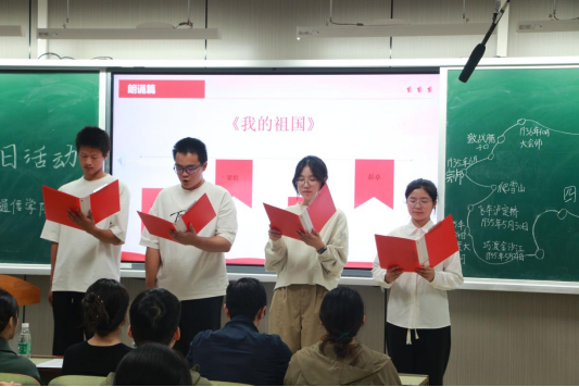 青年团员代表朗诵《我的祖国》,慷慨激昂、精神饱满,不仅传颂了华夏史册的昨天和今天,同时也预示着中华民族的明天将更加灿烂辉煌。