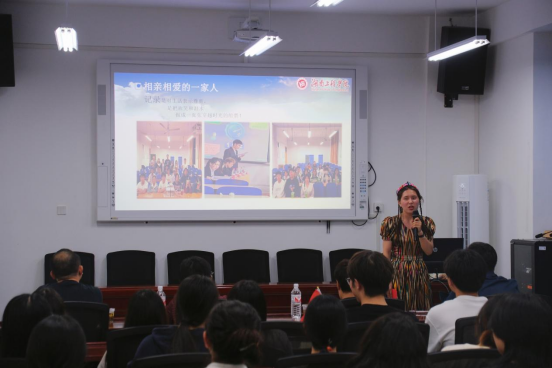 来自新疆的阿依谢木古丽·依孜布拉以“铸牢民族共同体意识,维护国家安全”为题作了一场精彩的国家安全主题宣讲。她向大家介绍了大美新疆、平安新疆、幸福新疆,讲述了自己在学校愉快的学习与生活故事。她表示,要持续深入践行总体国家安全观,铸牢中华民族共同体意识,争做新时代最耀眼的石榴籽,共同为中国式现代化建设贡献智慧和力量。宣讲内容情真意切、感人至深,赢得了在场团员青年的阵阵掌声。