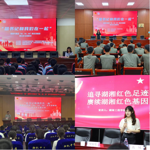 宣讲团成员禹凤为湘潭县第九中学150名同学们作《追寻湖湘红色足迹,赓续湖湘红色基因》主题宣讲。她从为国为民的爱国情怀、不怕牺牲的血性担当、坚如磐石的理想信念、敢为人先的实干品格四个方面,为大家讲解“什么是湖湘红色基因”,勉励同学们用奋斗谱写青春华章,为强国建设添砖加瓦。
