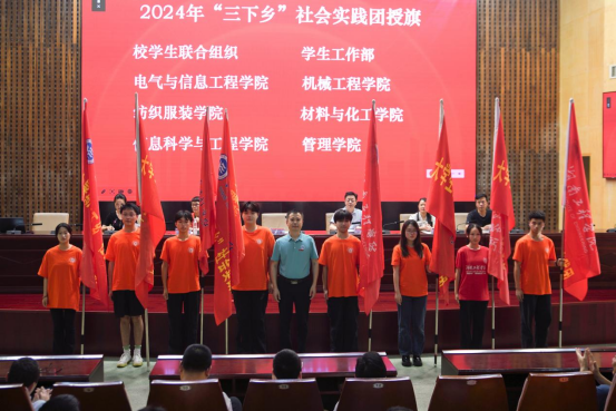 张小刚为“三下乡”实践团授旗并讲话。他表示,“三下乡”社会实践活动是青年学子受教育、长才干、作贡献的生动课堂,是锤炼品格、增长才干、实现价值的重要途径,希望全体志愿者结合新形势新任务,积极、踊跃投身实践活动。他指出,湖工学子要以心系家国、躬身实践的精神,求真务实讲好青春实践故事,挺膺担当答好青春实践之卷;要强化责任、确保安全,牢固树立安全第一的意识,提高自我防范能力,杜绝一切安全隐患;要在社会实践中注重理论与实践结合,合理运用所学专业知识,充分发挥自身聪明才智,为实现乡村振兴积极作出湖工学子应有的贡献。