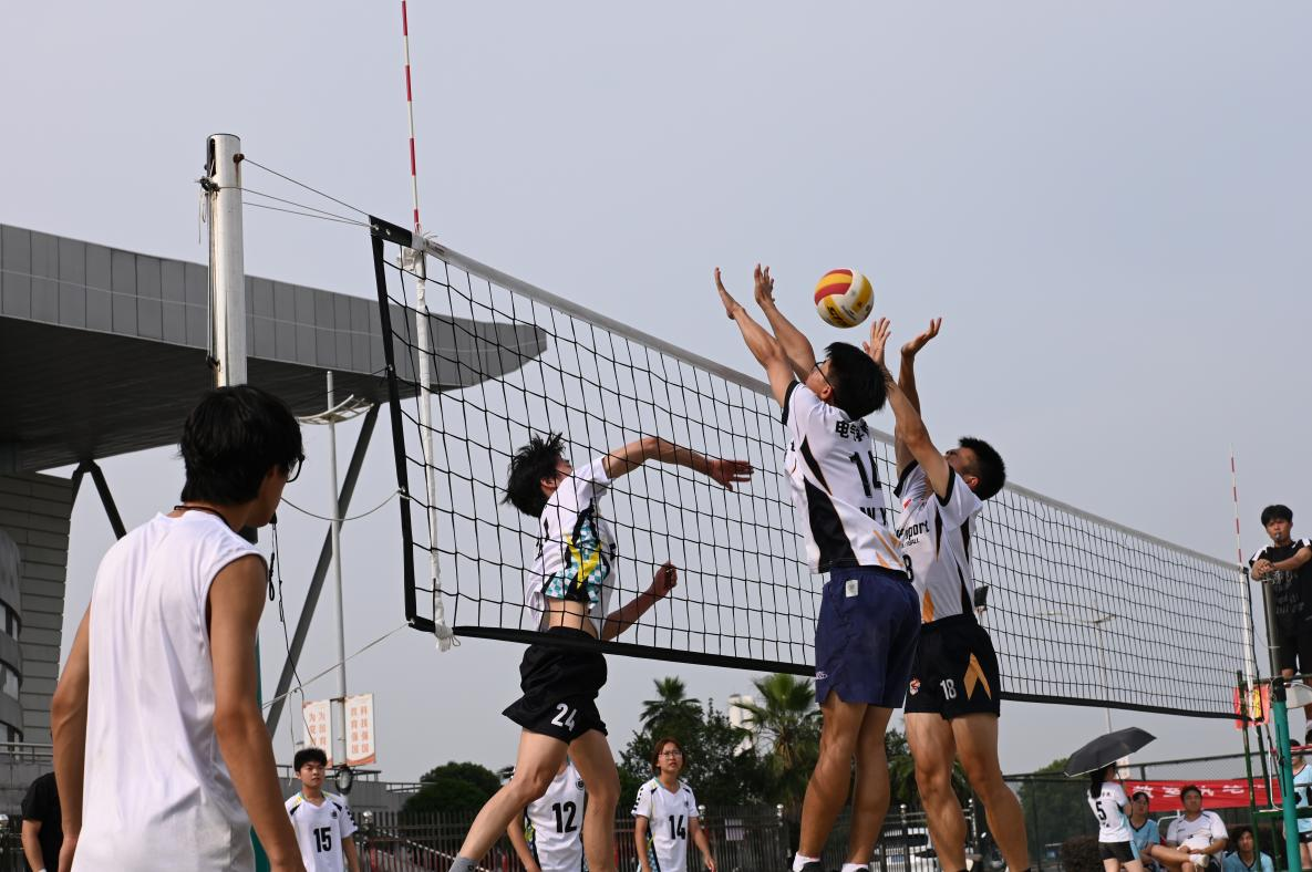 比赛分为小组赛和交叉淘汰赛两个阶段,现场气氛热烈。随着主裁判一声清脆的哨响,来自不同学院的运动员们精神抖擞,身着统一队服,在场上展现出专业的竞技状态。小组赛阶段,各队实力相当,比分交替上升,精彩场面层出不穷,电气与信息工程学院队的二传手以精准的传球屡屡创造进攻机会,信息科学与工程学院和机械工程学院队的自由人则以惊人的反应速度完成多次精彩救球,引得现场观众阵阵惊呼。