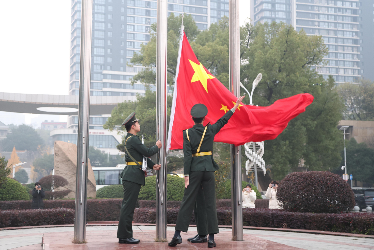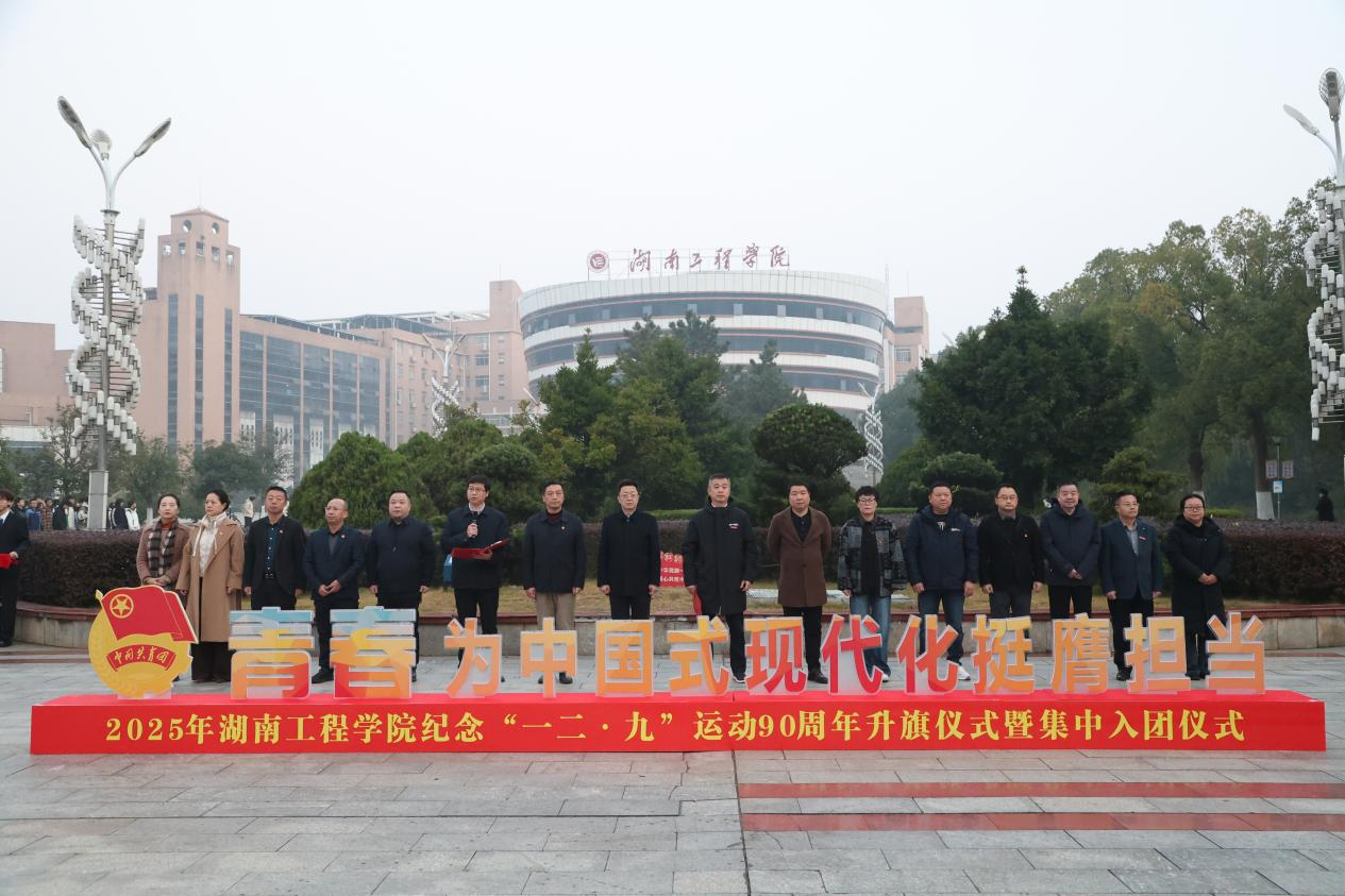 12月8日清晨,388vip太阳集团在知行广场举行纪念“一二・九”运动90周年主题升旗仪式和集中入团仪式。党委委员、副校长张小刚作湖南省高校优秀思想政治工作者名师工作室主题宣讲,党委委员、组织部长曾永卫,相关职能部门负责人,各学院党委副书记、分团委(团总支)书记,2025年下半年新发展团员和医学工程技术学院2025级全体学生参加。