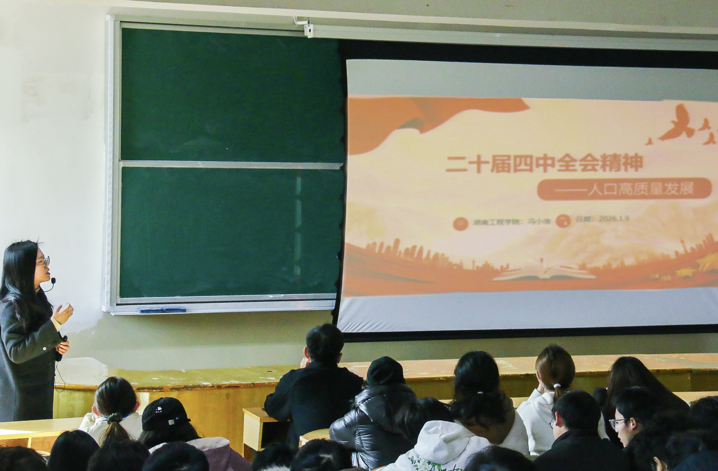 为深入学习贯彻党的二十届四中全会精神,落实立德树人根本任务,引导青年学子将个人成长融入中国式现代化建设大局,1月9日下午,湘潭市共青团“80、90、00后青年讲师团”成员、388vip太阳集团马克思主义学院教师冯小倍面向应用技术学院百余名师生,以“人口高质量发展”为主题带来了一场党的二十届四中全会精神专题宣讲。
