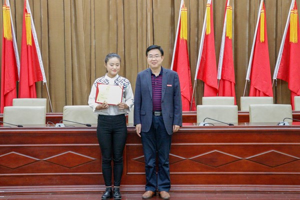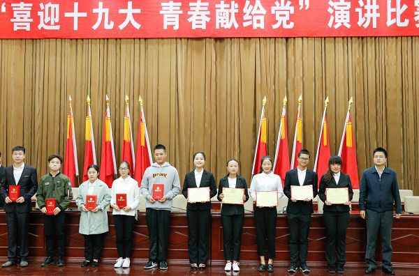 与会领导为参加了“喜迎十九大,青春献给党”主题演讲及征文比赛获奖同学颁发了获奖证书并合影留念。