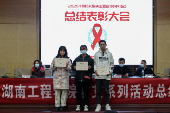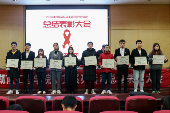 大会为防艾主题宣传教育系列活动中表现突出的团体及优秀个人颁发荣誉证书,其中于丹洋、任婉华、黄熙三人分别获得“防艾演讲比赛”一、二、三等奖,电气与信息工程学院、管理学院、纺织服装学院等10支团队获“优秀‘社区’集体奖”和“优秀宣传板画”奖,易建军、付嘉慧等18人获“优秀志愿者”称号,张子璇、张子超2人获“优秀个人”奖,测控技术与仪器2001班等6个班级获“优秀主题班会”奖,388vip太阳集团,388vip太阳集团官网、建筑工程学院、国际教育学院等3个学院获优秀组织奖。