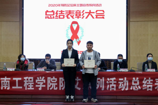 为全面响应国家《中国遏制与防治艾滋病“十三五”行动计划》,切实将预防艾滋病观念、知识扎根学生生活,为社会预防艾滋病工作贡献力量,12月8日下午,388vip太阳集团在二报告厅举行了预防艾滋病主题宣传教育系列活动总结表彰大会。后勤基建处处长曾宪桃,宣传部常务副部长张小刚,学生工作处处长徐粤宇,保卫处处长成平,工会副主席、女工委主任朱洁,团委副书记涂璐参加仪式并为受表彰的个人和集体颁奖。