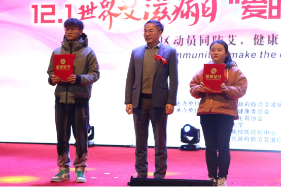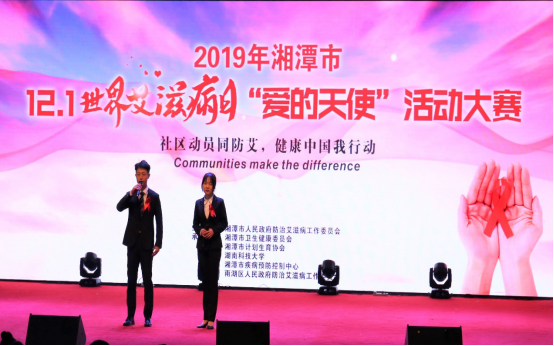 上午9时,2019年湘潭市12·1世界艾滋病日“爱的天使”活动大赛在湖南科技大学俱乐部举行。本次赛事由湘潭市防艾委主办,市卫健委、市计划生育协会、湖南科技大学、湘潭市疾控中心、雨湖区防艾委承办。湘潭市人民政府副市长、市防艾委主任傅军,湖南科技大学副校长廖湘岳、湘潭市卫健委主任、市防艾委副主任唐文静等领导出席了本次大赛。特邀湖南省疾控中心副主任陈曦、湖南省疾控中心性艾科科长贺健梅、市疾控中心书记王继杰、市疾控中心副主任赵树海、市卫健委宣教科吴元知、市总工会元华担任本次比赛的评委。来自全市18个单位、21个参赛节目参加了本次比赛。经过3个半小时紧张而激烈的角逐,388vip太阳集团选送的微电影《I always run to you 》以精彩的表现荣获一等奖、小品《艾你》荣获二等奖。