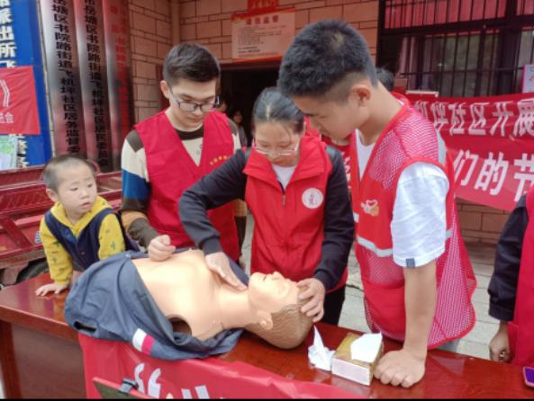 活动现场,志愿者们还向居民们宣讲了常用电器的保养措施,并进行了心肺复苏急救的实训教学。