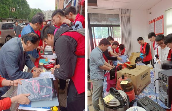 服务开展后,许多社区居民携带故障电器前来申请维修,一时间待修的家电堆满了整个社区大厅。为提高维修效率,支部老师和志愿者们一起分成了四个小组,一组负责接待、登记待修家电信息,一组负责现场维修,一组负责特殊零部件的临时采购,一组负责把维修好的家电送回居民家中。