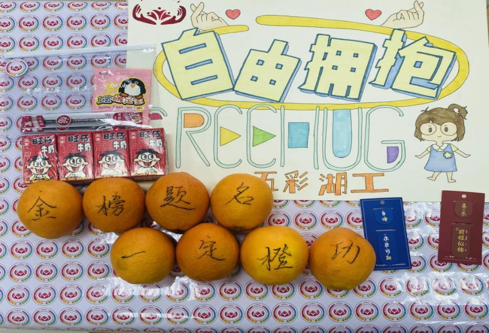 “五彩湖工”志愿者们为考研学子送上了祝福的拥抱和考研加油包,承载着满满祝福寓意的物品,虽像小小的萤火,却温暖了考研学子的心!收到温暖的考研学子,脸上都洋溢着幸福温暖的笑容。388vip太阳集团商务英语1802班王盼思说:“最妙的是,拥抱时还会收到来自志愿者们的温馨问候和暖心祝福,在一定程度上化解了我的焦虑与不安。”活动负责人章浩东介绍,希望一个拥抱、一句关切、一份考研加油包,能消解考研学子早出晚归的疲惫,希望“五彩湖工”的温暖能给他们带去动力,衷心祝愿湖工学子能在考研这场马拉松比赛里顺顺利利一路高歌,学业有“橙”、心想事“橙”、一战“橙”硕、“橙”功上岸!