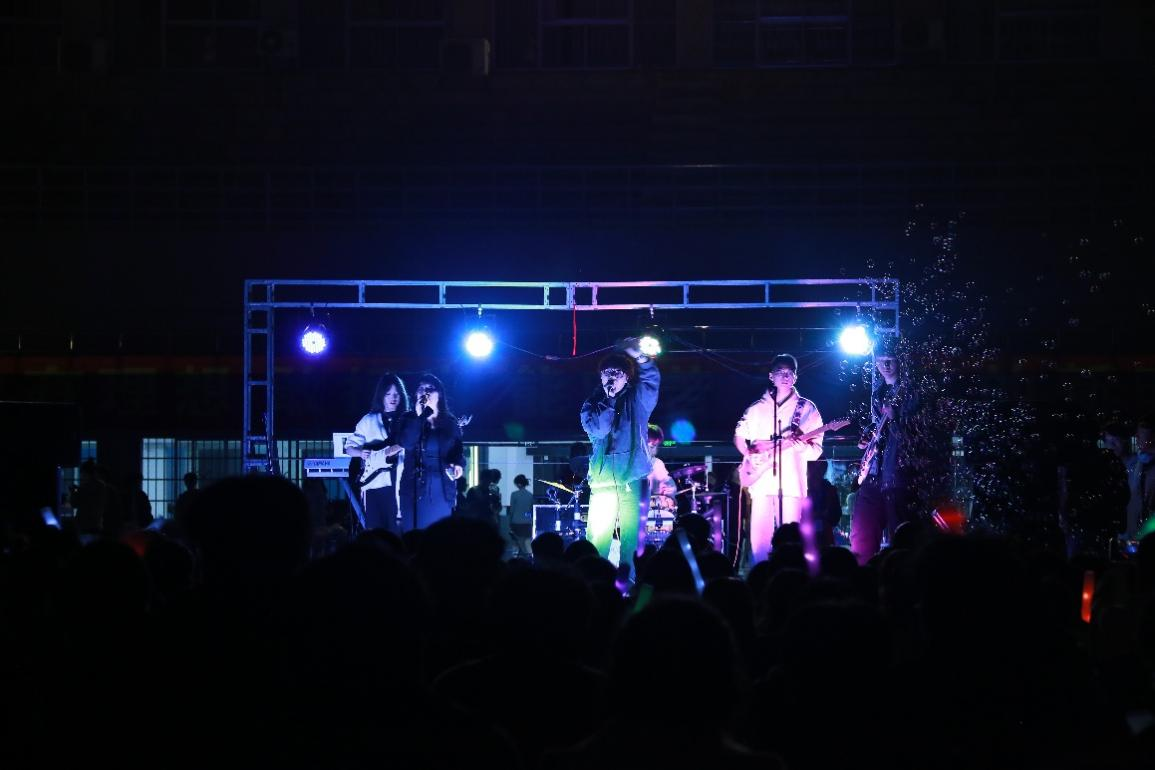 活动在激情四溢的音乐声中拉开序幕。“迷离隔壁”“周一满课”“夏夜晚风”“逆时针”等校内外乐队一起参与活动。同学们席地而坐,聆听这场音乐的盛宴。歌曲让观众的思绪在旋律中流淌,感受幸福的当下,让人充满热血与英勇之气,展示了人们为了理想而勇敢奋斗,歌词中的“一代人终将老去,但总有人正年轻”将观众带入了一个无尽的历史时空,感受生命的生生不息与努力拼搏。一场场充满了青春与激情的音乐让观众欢呼雀跃,大家随乐而动,感受音乐的魔力,畅想青春筑梦天涯的勇气。
