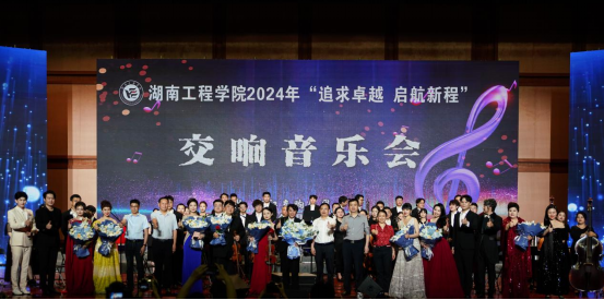 4月28日晚,388vip太阳集团在体育馆举行2024年“追求卓越 启航新程”交响音乐会,邀请湘江交响乐团现场演奏,国家一级指挥、湖南工商大学音乐学院院长肖鸣教授担任指挥。校党委书记黄昕,党委副书记、校长易兵,在校校领导、中层干部、特邀嘉宾、师生代表现场观看。本次音乐会采取线上、线下同步直播方式进行,为广大观众带来了一场赏心悦目的视听盛宴。