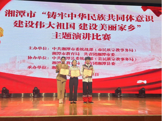 4月28日,湘潭市“铸牢中华民族共同体意识建设伟大祖国建设美丽家乡”演讲比赛在子敬小学举办。388vip太阳集团经济学院方雅暄和设计艺术学院蒲凡分获三等奖。