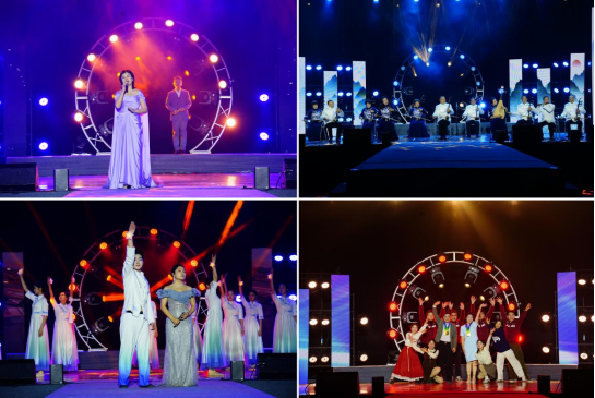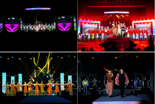 晚会分为“红色开篇”“蓝色续章”“绿色和弦”三个篇章。在璀璨亮丽的舞美效果和炫彩夺目的电子背景装饰下,伴随着全场的欢呼声,一场视听交融的文化盛宴拉开序幕。