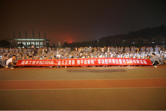 9月22日晚与9月23日晚,由校团委主办的“奋斗正青春 携手启新程”2025年军训慰问演出分别在主校区与书院路校区田径场举行。校学生联合会联合各学生组织及社团,为正在参加军训的5000余名2025级新生带来歌曲、舞蹈、乐队表演、合唱、礼服秀、机甲展示等节目。