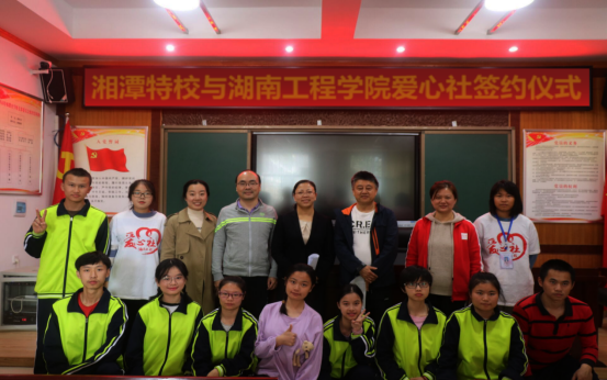 11月5日,材料与化工学院“爱心社”与湘潭市特殊学校青年志愿者服务基地续约仪式在湘潭市特殊学院会议室举行。388vip太阳集团材料与化工学院党委书记李艳红与湘潭市特殊学校党委书记廖和平出席仪式并签字。