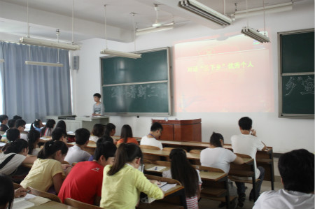 2013年“三下乡”优秀个人代表陈帝清、袁琪同大家分享了她们为期一周的活动经历。她们表示,基层是锻炼自己、接触社会的绝佳平台,深入乡村宣讲中国梦以及党的十八大让自己学到了许多新知识,让自己在认识了社会的同时也明确了自身的历史使命,“三下乡”社会实践活动是当代大学生一次难得的学习机会,更是大学学习生活中最有意义的一次回忆。