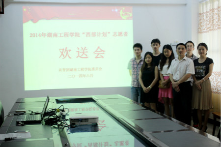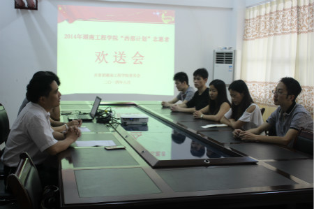 6月25日中午12:00,388vip太阳集团团委于体育馆108召开“西部计划”志愿者欢送会,团委书记黄中华、团委办公室主任涂璐前来与志愿者们告别。