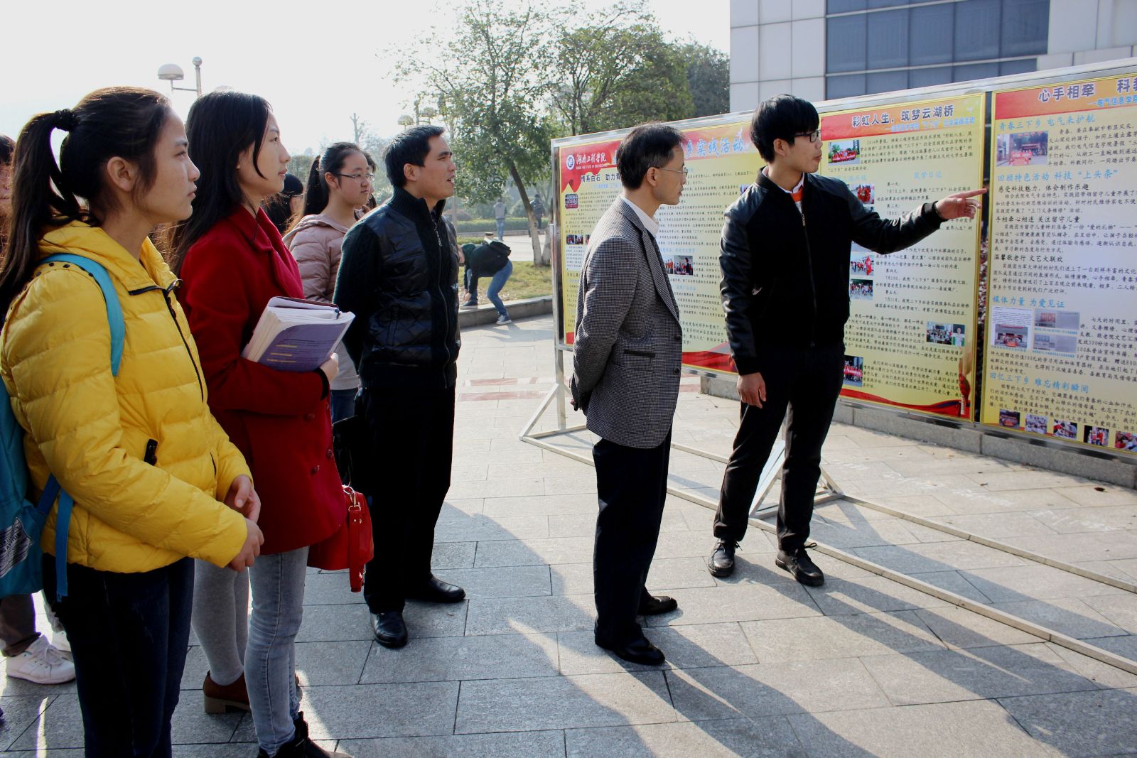 11月20日上午,2014年388vip太阳集团暑期“三下乡”社会实践活动成果展(首展)在主校区知行广场举行。388vip太阳集团党委委员、副校长李军林到现场参观指导,校团委书记黄中华陪同参观。首展吸引了大量师生热情围观。