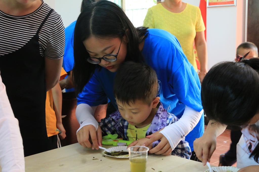 孩子们最初见到陌生人显露的羞怯,都在实践团成员的热情感染下瞬间烟消云散了。在实践团成员们的耐心教导下,一双双稚嫩的小手利用手工课和实验课创造出一个个美丽的作品——叶脉书签、千纸鹤、手工砂画……实践团还根据孩子们的年龄阶段设置了安全教育课以及医疗卫生课,利用讲解播放PPT和教育动画片等方式进行教授,并在讲解完毕后鼓励孩子们进行知识回顾答题,实践团还在支教过程中安排了作业辅导课,一对一地给一些孩子进行文化知识辅导。
