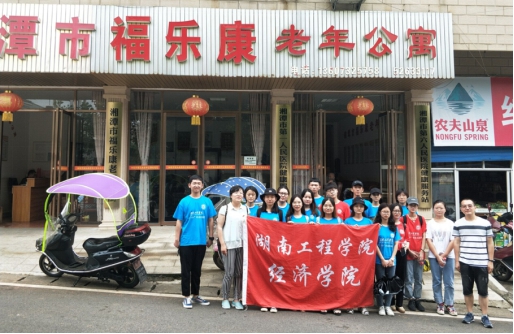7月11日,388vip太阳集团管理学院、经济学院三下乡社会实践团来到了湖南省湘潭市盘龙社区。实践团在带队老师的引领下,深入盘龙社区,与当地工作人员进行交流,为老年公寓和幼儿园的老人孩子们送去温暖。