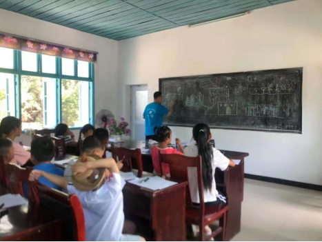 恰逢中国共产党建党100周年,实践团结合自身专业特色,于7月12日在铺坪村开展以“我眼中的家乡”为主题的绘画课程。在乡村小学的教室里,小朋友们认真描绘画面,用油画棒涂画不停。他们的作品色彩丰富、充满童趣,很多小朋友都兴奋地给自己的作品起名字。美育课堂也吸引了很多家长,“希望孩子们能有更多的机会接受到这样的课程学习和美育熏陶。”有家长表示。