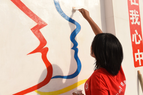 志愿者在烈日下绘画