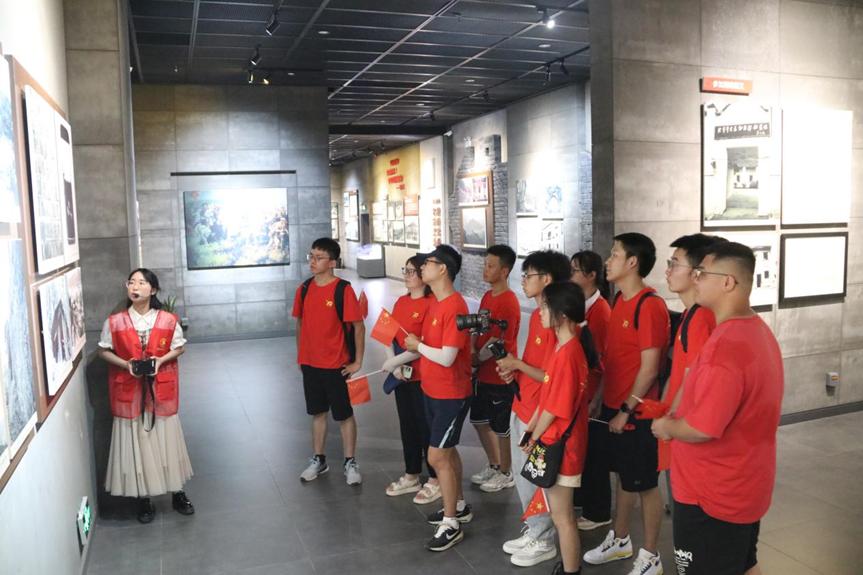 传承红色基因,闪耀青春红。团队通过参观一个红色景点、诵读一首红色诗歌、吟唱一支红色歌曲和讲述一个红色故事的“四个一”活动赓续红色血脉,传承红色文化。7月15日,在粟裕故居和纪念馆,讲解员从“侗家少年 投身革命”、“初露将才 投笔从戎”、“名震江淮 敌后抗日”、“华东主将 决战决胜”和“致力国防 呕心沥血”五部分向队员们介绍粟裕将军的英勇事迹。粟裕将军的不朽功勋、军事思想和崇高风范深深地打动着每一位团队成员。“小朋友们,在你们的家乡,有一位大英雄,你们知道是谁吗?”队员孙浩以“一件破汗衫”为题向小朋友们讲述粟裕将军反对铺张浪费,坚持清正廉洁的故事。“松苍敢向云争立,草劲何惧疾风寒……”在埔坪村村委党员活动室,队员们正带领10多位当地儿童诵读粟裕的诗词《七律·抒怀》,领略将军对党、对革命事业的坚贞不渝。五星红旗在小朋友的手中挥舞,团队指导老师龚旭昱以电琴伴奏的形式带领团队成员和小朋友同唱红色歌曲《打靶归来》,致敬战神粟裕。