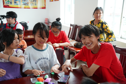 关爱留守儿童,传递青春爱。为助力留守儿童健康成长,7月15日,三下乡团队在铺坪村村委会组织开展了一场“心手相牵 守护心灵”关爱留守儿童活动。在村委会,队员耐心带领十多名留守儿童一起制作彩泥小玩偶,经过挑颜色、拼接和塑型,一件件可爱的小玩偶出品了。看到自己的作品,小朋友们脸上绽放出灿烂的笑容。“在小小的花园里挖呀挖呀挖……”队员们与小朋友正在合唱儿歌《挖呀挖呀挖》,团队指导老师龚旭昱弹电琴伴奏,欢声笑语里记录着这份共同的欢乐。为记录小朋友的童真时刻,队员给每位小朋友拍摄了一张照片,这些照片经过修剪将由村委发给留守儿童在外务工的父母,传递父母与孩子间浓浓的思念与爱意。