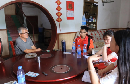 实践期间,全体团员走村入户,随机访谈村民、现场进行问卷调查,通过了解普通话乡村普及情况、老一辈在日常生活是否使用普通话、对普通话的掌握程度、是否会说其他方言等一系列问题,深入地了解到韶乡村普通话普及程度,学习状况和学习需求,以及当地居民开展红色旅游业建设的语言需求。在询问过程中,成员们发现,当地没有形成很好的说普通话的风气,普通话的传播在当地存在一定的滞后性和盲目性。悉知此情况,成员们纷纷向当地居民宣传普通话,加大本农村地区国家通用语言文字推广力度,进一步提高国家通用语言文字普及程度和使用质量,服务铸牢中华民族共同体意识,助力乡村红色旅游业发展。