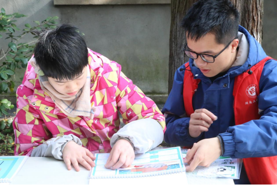 “我可以帮助姐姐打扫卫生。”“哥哥,我帮你擦桌子!”在雷锋小课堂环节,志愿者们向学员们普及雷锋精神的内涵以及雷锋同志所做的好人好事后,培智园的学员们纷纷表示自己也可以成为“小雷锋”。最后,志愿者们协作学员们完成绘本任务,在志愿者们与学员们的默契搭配下,一本本可爱的绘本出现在了大家的面前。