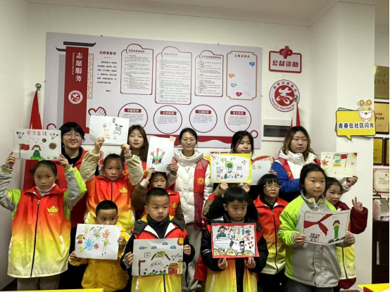 活动最后,孩子们手持绘画作品与志愿者在社区宣传墙前合影。据悉,本次志愿活动是国际教育学院“雷锋月”系列实践的重要组成部分。学院坚持将思想政治教育与社会服务深度融合,党建带团建,让党旗在基层一线高高飘扬。