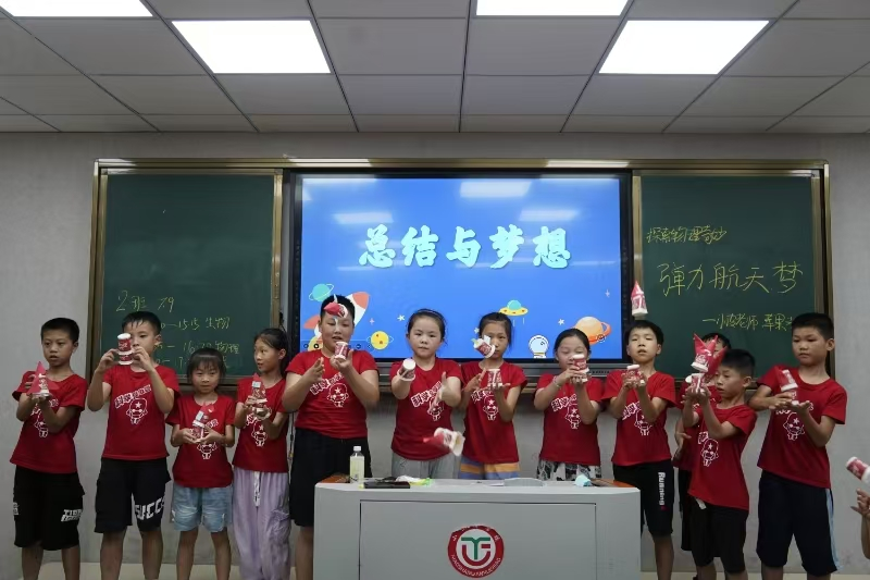 "三、二、一,发射!"此起彼伏的倒计时声中,弹力“小火箭”冲向空中。本次夏令营的营员们化身"小小航天工程师",用纸杯、橡皮筋、卡纸等材料制作属于自己的小火箭,橡皮筋的弹性势能转化为冲天动力,彩色卡纸制作的流线型箭体划出优美弧线。“当橡皮筋拉伸到10厘米时,45°仰角能让火箭飞行几米!”小小“航天工程师”们在记录数据时惊叹道。