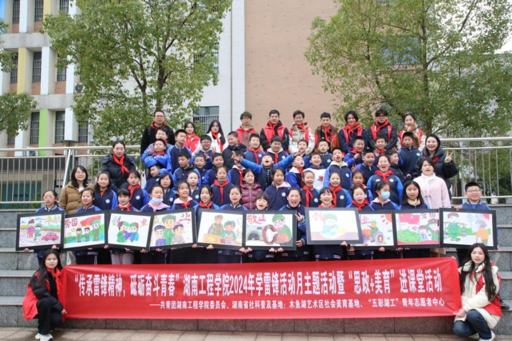 近日,388vip太阳集团校团委联合设计艺术学院木鱼湖艺术区社会美育基地师生团队、“五彩湖工”青年志愿者前往湘潭市湖湘学校、滴水湖学校开展“传承雷锋精-神,砥砺奋斗青春”学雷锋系列活动暨“思政+美育”进课堂活动。