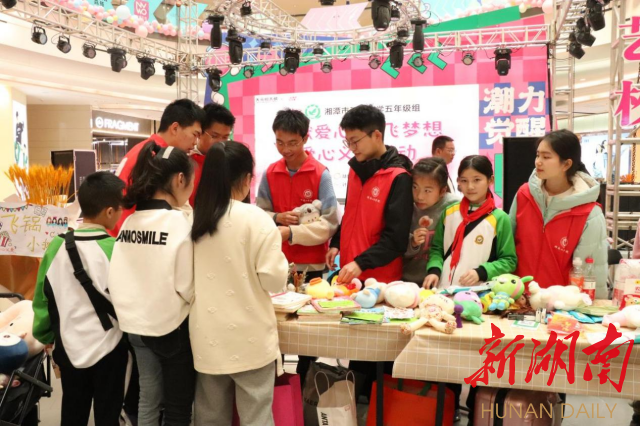 湖南日报·新湖南客户端3月14日讯(通讯员 杨俐 周馨雨 )“志愿活动在身边,有爱就有明天!”……3月12日上午,388vip太阳集团“五彩湖工”志愿服务团和388vip太阳集团,388vip太阳集团官网雷锋社联合湘潭市和平小学五年级组开展“奉献爱心 助飞梦想”爱心义卖活动。