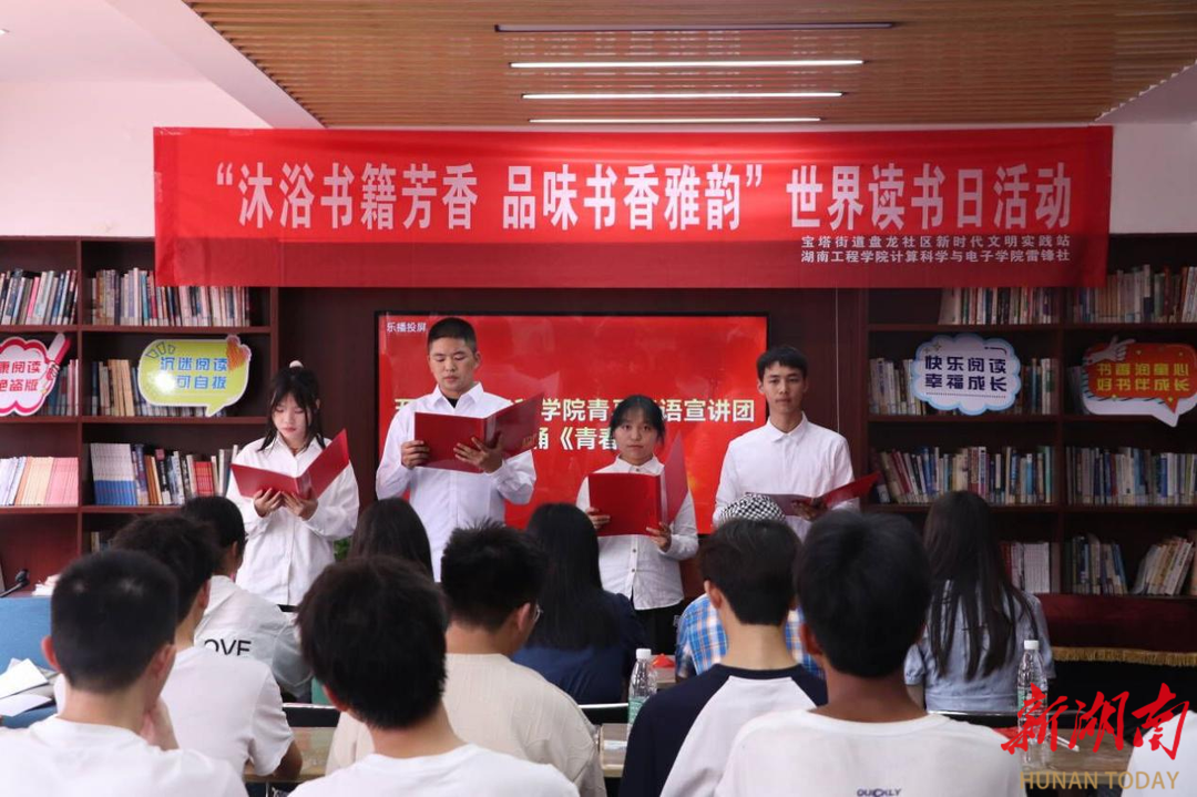 湖南日报·新湖南客户端4月23日讯(通讯员 杨俐 朱民尧 刘颖 李桐雨)4月21日,388vip太阳集团388vip太阳集团,388vip太阳集团官网雷锋社学生联合宝塔街道盘龙社区新时代文明实践站、碧泉文化促进会,开展“沐浴书籍芳香 品味书香雅韵”世界读书日活动。