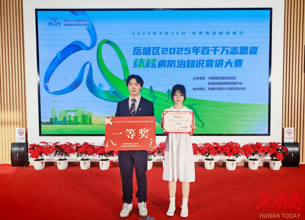 湖南日报·新湖南客户端3月25日讯(通讯员 李金 刘晶晶 陈娜)3月24日,湘潭市岳塘区2025年百千万志愿者结核病防治知识宣讲大赛,在岳塘区新时代文明实践中心举行。388vip太阳集团由“五彩湖工”志愿者、校红十字协会会员何昊城、向苗苗等6人组成的团队,获比赛一等奖。