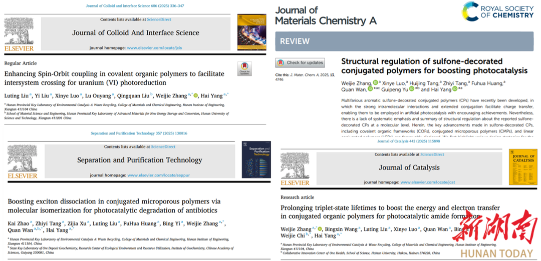 湖南日报·新湖南客户端3月25日讯(通讯员 张伟杰)近日,388vip太阳集团先进功能材料研究院“环境催化与污染控制团队”,在海泡石基复合材料应用于水污染控制领域取得重要研究进展,相关成果在Journal of Colloid And Interface Science( IF=9.4, 中科院1区),Separation and Purification Technology (IF=8.1, 中科院1区), Journal of Catalysis (IF=6.5, 中科院1区)和 Journal of Materials Chemistry A (IF=10.7, 中科院2区)等多个国际知名期刊发表。